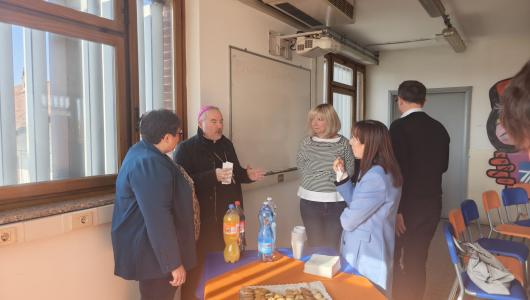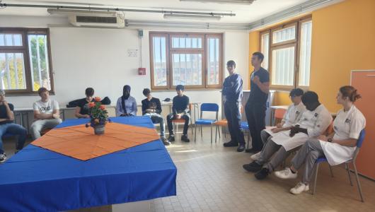 Per l'occasione sono presenti sia la direttrice della sede, Federica Santinato, che la direttrice dell'Ente, Alessia Bondone, le quali, insieme a docenti e studenti dei settori meccanico, elettrico e delle produzioni alimentari, si riuniscono per un breve momento di presentazione.